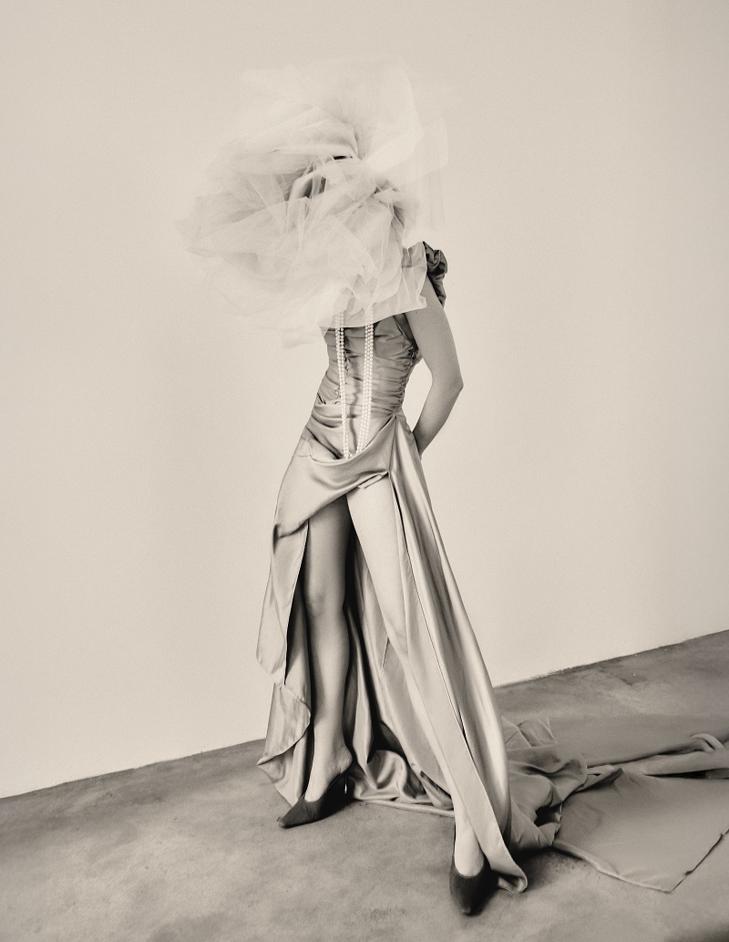In this editorial by Paolo Guadagnin, the woman’s identity is fluid, never fixed. The body becomes a site of tension between what is revealed and what remains hidden, where fabrics, gestures, and light engage in an ambiguous dialogue. Silhouettes suggest rather than define, and the feminine presence moves beyond literal narration to become an attitude, an atmosphere