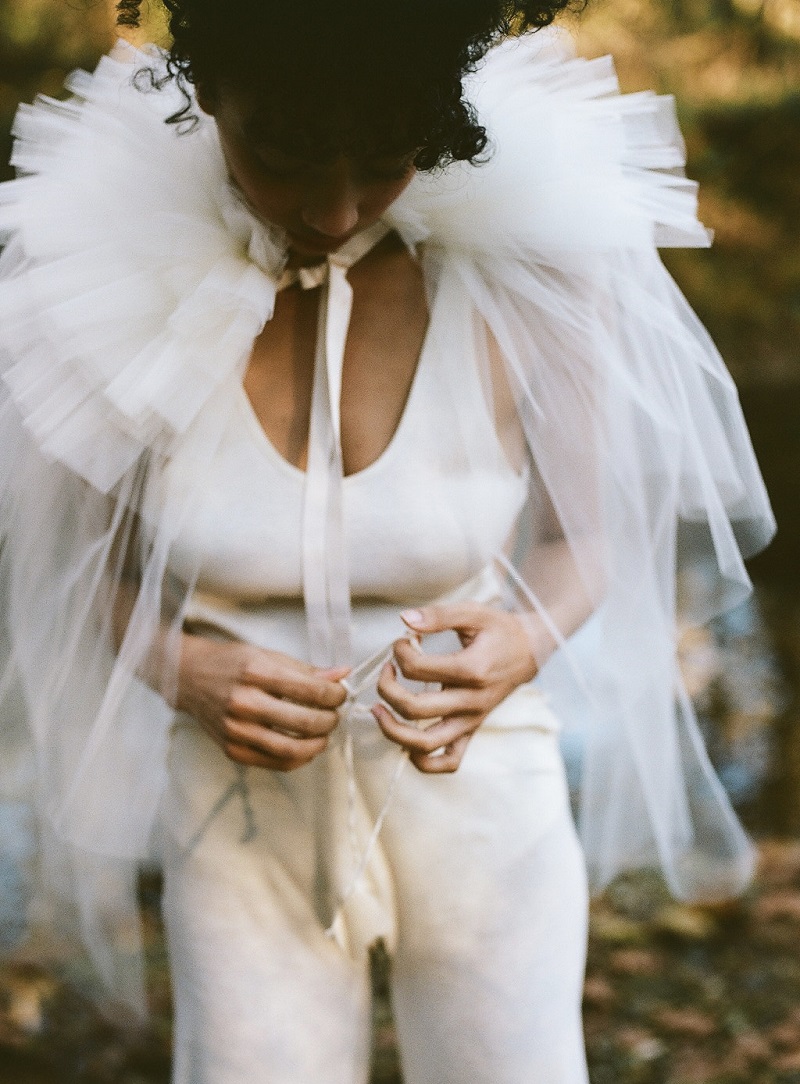 Set against the vast landscapes of the American Midwest, this editorial explores the fragile tension between innocence and unease. Shot on film, the story unfolds through black lace, antique silhouettes, and weathered settings—cornfields, abandoned mansions, and the fading glow of a historic covered bridge—where nostalgia quietly drifts into surrealism. Under the lens and creative direction of Erin Tufts Cartier, fashion becomes folklore: soft yet instinctively wild, wholesome yet haunted. Here, the heartland is transformed into myth, and memory lingers like a presence that never fully lets go.